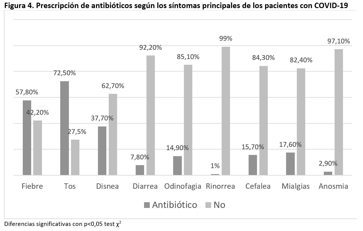 Conclusión: se prescribieron antibióticos para el COVID-19 en pocas ocasiones, en relación con edad avanzada, mayor frecuentación médica y mayor gravedad clínica.